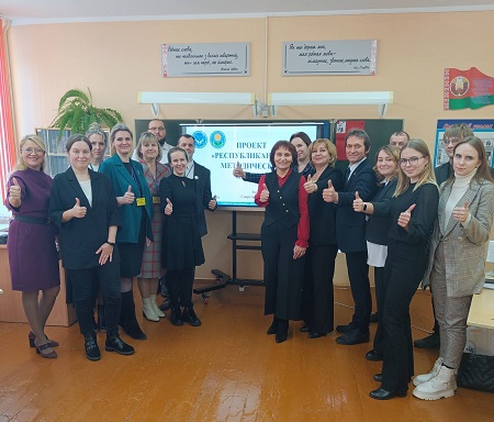 Это известная в Республике Беларусь школа. Именно здесь трудится победитель конкурса «Учитель года Республики Беларусь» 2023 года Шаминский С.М., который приветствовал гостей на выставке детских работ, посвящённых истории.