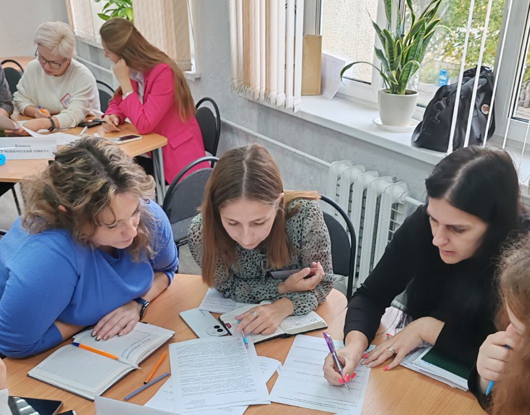В ходе профессионального диалога сотрудники ГОИРО познакомили коллег с особенностями научно-методической работы, рассказали об электронных ресурсах, которые целесообразно использовать в профессиональной деятельности и рекомендовать учителям, техниками саморегуляции. В рамках деловых игр, организованных в микрогруппах, участники вникли в нормативные правовые документы и обсудили практику применения, в особенности организации методической работы и органов самоуправления в учреждениях образования.![]()